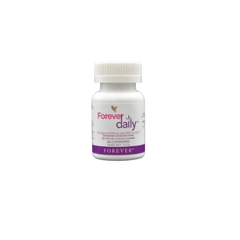 Forever Daily™ associe 55 ingrédients essentiels : vitamines, minéraux, extraits de fruits et légumes, et le Complexe AOS (Aloe OligoSaccharides) pour une assimilation optimale des nutriments.